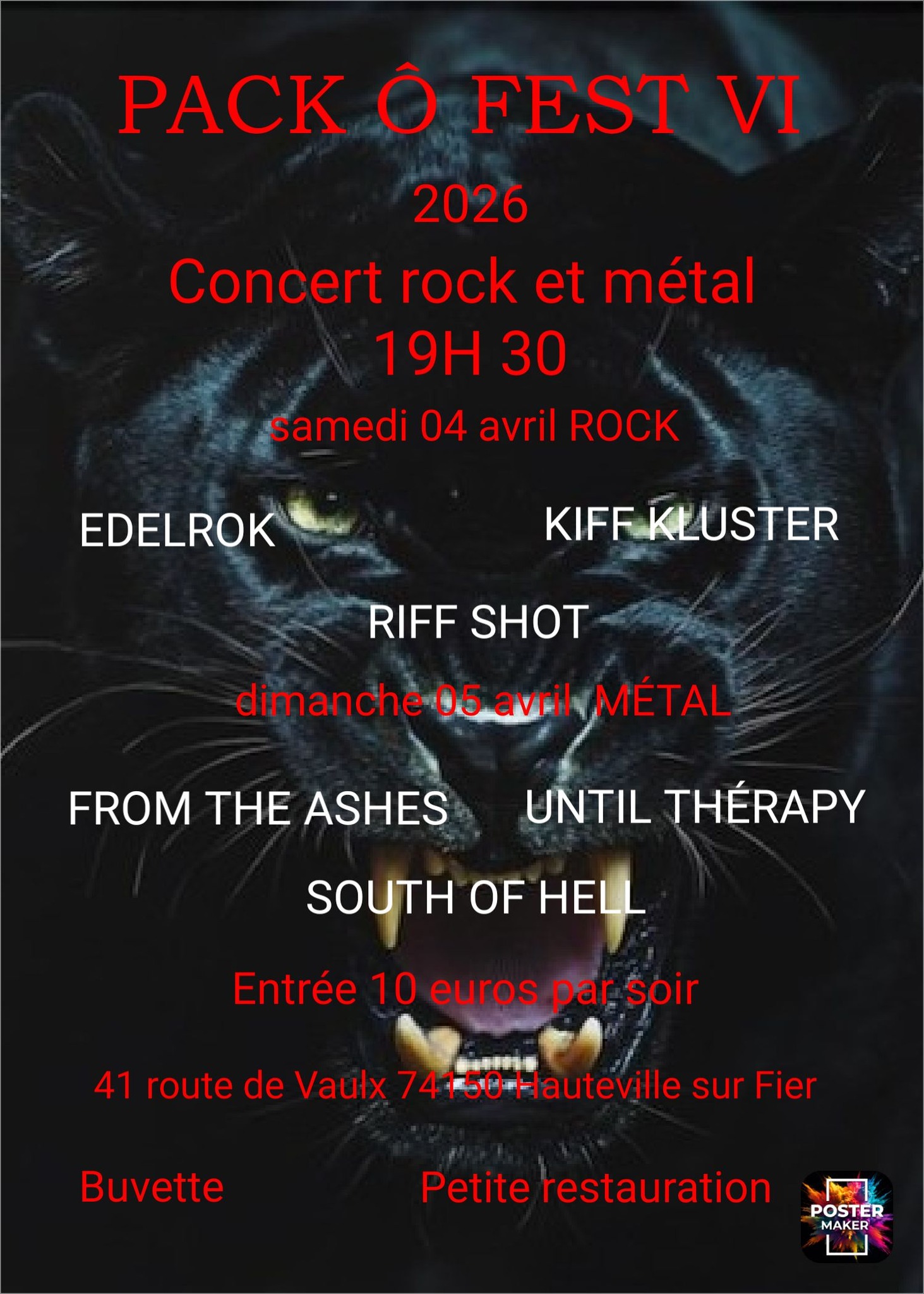 PACK’O’FEST VI à Hauteville sur Fier 4 avril 2026 19h30 74150 Hauteville sur Fier 41, route de Vaulx Facebook de l'organisateur Facebook de Riff Shot